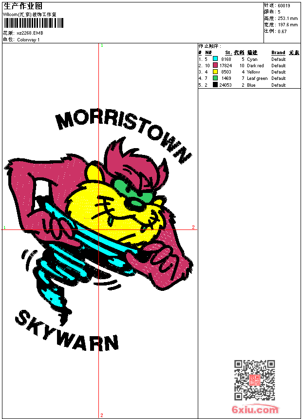 - emb花版参数: 大小:186.00 KB / 尺寸:198*253[毫米] / 针数:60019针 / 线色:5 / 格式:emb / 版本:9