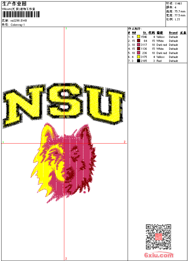 - emb花版参数: 大小:68.00 KB / 尺寸:77*76[毫米] / 针数:11461针 / 线色:4 / 格式:emb / 版本:9