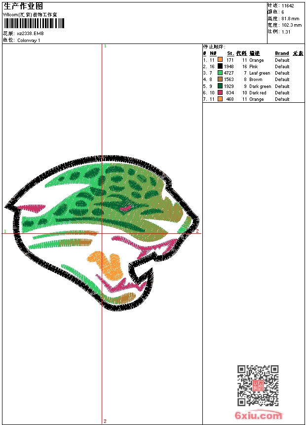 - 版带文件需绣花软件方可打开,可配色打印导出各种格式或直接上机绣。如无绣花软件可下载1:1模拟效果图。