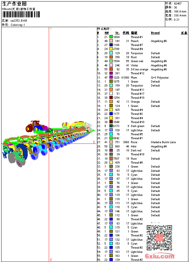 - emb花版参数: 大小:520.50 KB / 尺寸:330*167[毫米] / 针数:92407针 / 线色:36 / 格式:emb / 版本:9