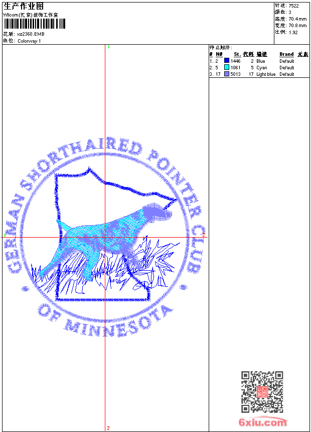- emb花版参数: 大小:63.00 KB / 尺寸:71*70[毫米] / 针数:7522针 / 线色:3 / 格式:emb / 版本:9