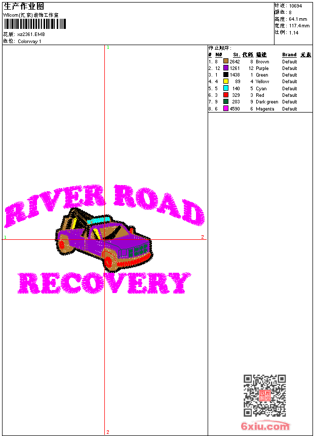 - 版带文件需绣花软件方可打开,可配色打印导出各种格式或直接上机绣。如无绣花软件可下载1:1模拟效果图。