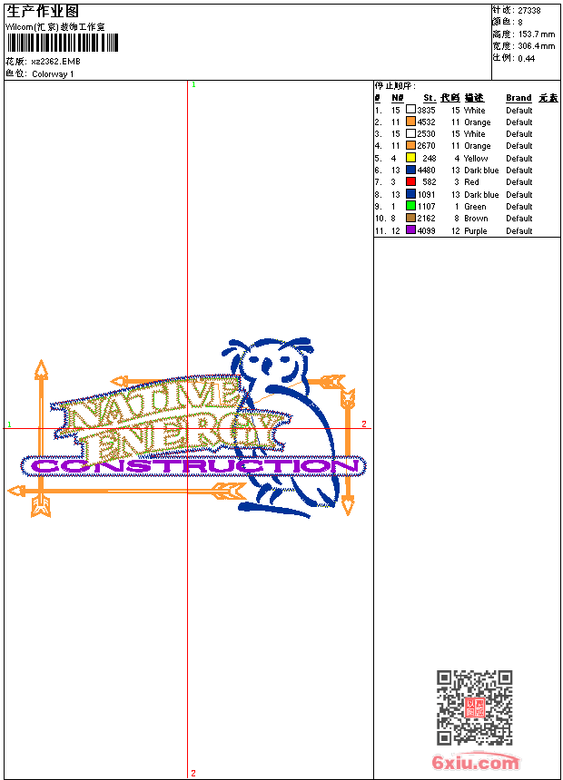 - emb花版参数: 大小:150.00 KB / 尺寸:306*154[毫米] / 针数:27338针 / 线色:8 / 格式:emb / 版本:9