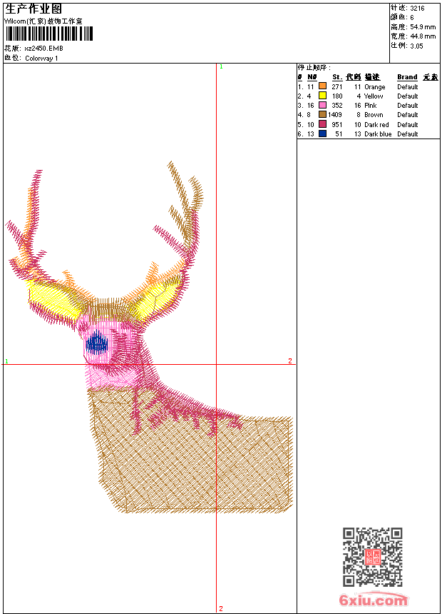 - emb花版参数: 大小:36.00 KB / 尺寸:45*55[毫米] / 针数:3216针 / 线色:6 / 格式:emb / 版本:9