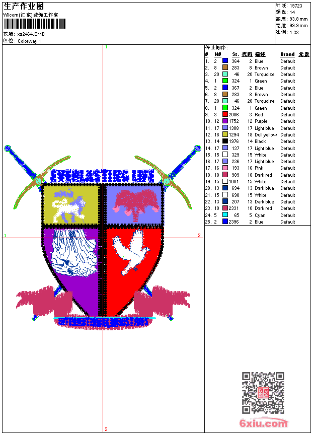 - emb花版参数: 大小:106.00 KB / 尺寸:100*94[毫米] / 针数:19723针 / 线色:14 / 格式:emb / 版本:9