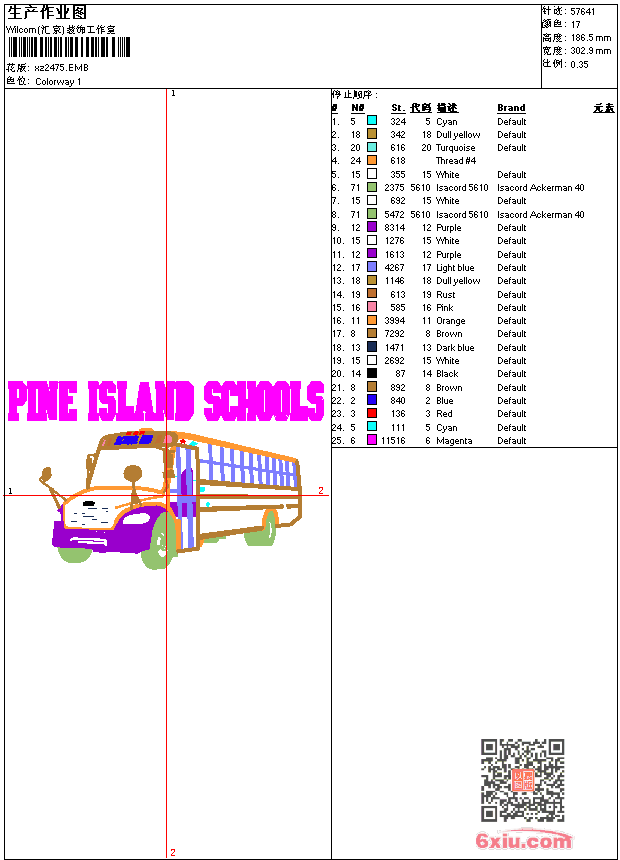 - emb花版参数: 大小:205.00 KB / 尺寸:303*186[毫米] / 针数:57641针 / 线色:17 / 格式:emb / 版本:9