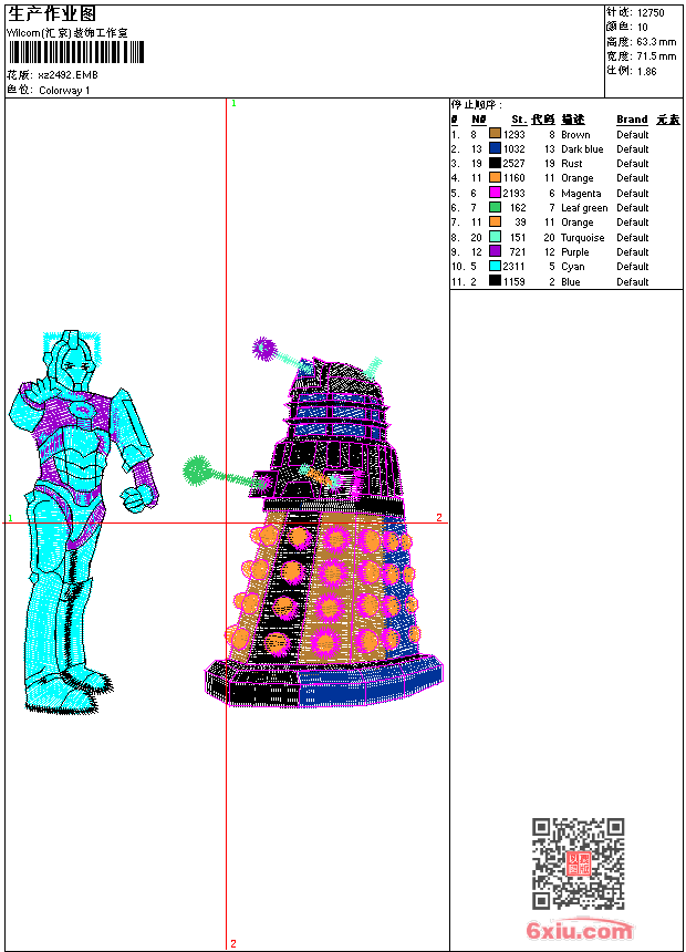 - 版带文件需绣花软件方可打开,可配色打印导出各种格式或直接上机绣。如无绣花软件可下载1:1模拟效果图。