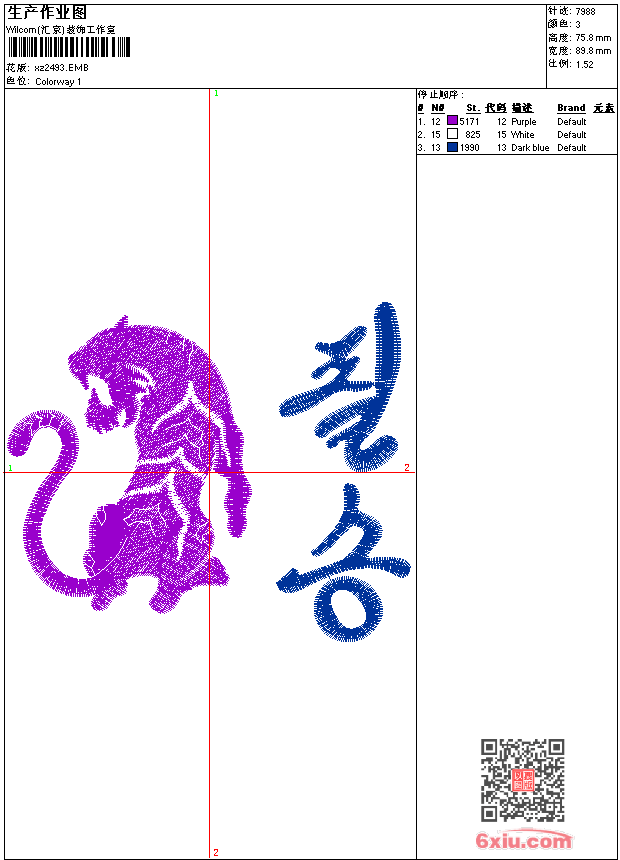- 版带文件需绣花软件方可打开,可配色打印导出各种格式或直接上机绣。如无绣花软件可下载1:1模拟效果图。