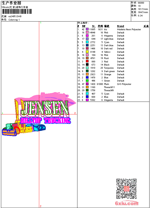 - emb花版参数: 大小:282.50 KB / 尺寸:304*181[毫米] / 针数:66880针 / 线色:19 / 格式:emb / 版本:9