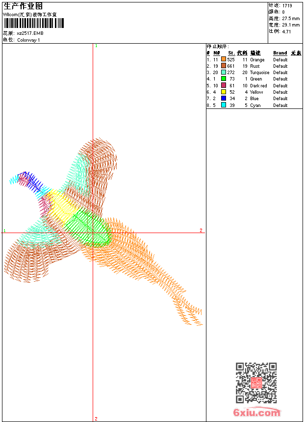 - 版带文件需绣花软件方可打开,可配色打印导出各种格式或直接上机绣。如无绣花软件可下载1:1模拟效果图。