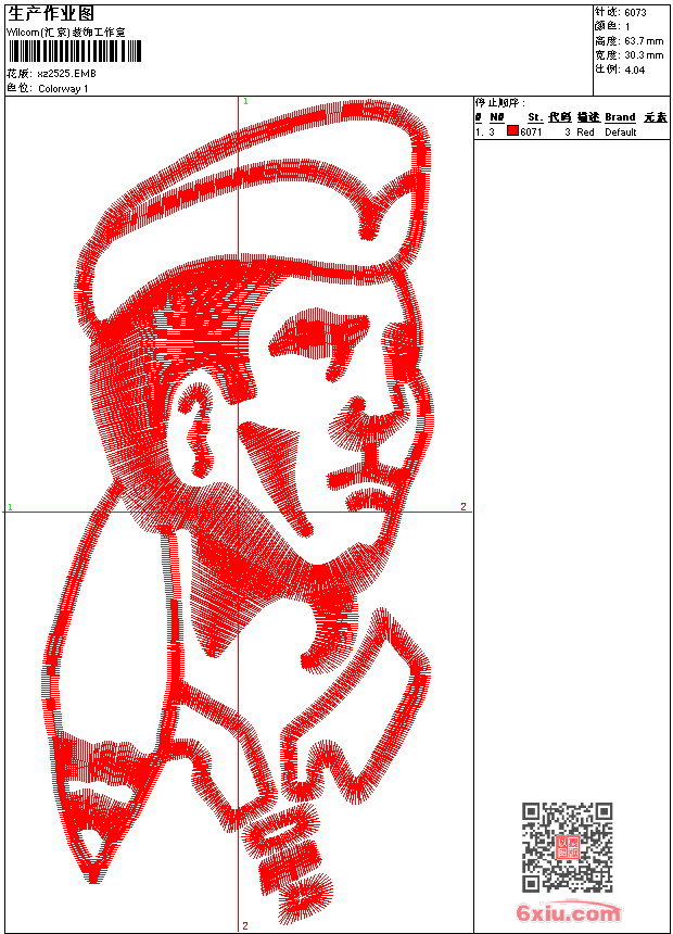 - emb花版参数: 大小:38.50 KB / 尺寸:30*64[毫米] / 针数:6073针 / 线色:1 / 格式:emb / 版本:9