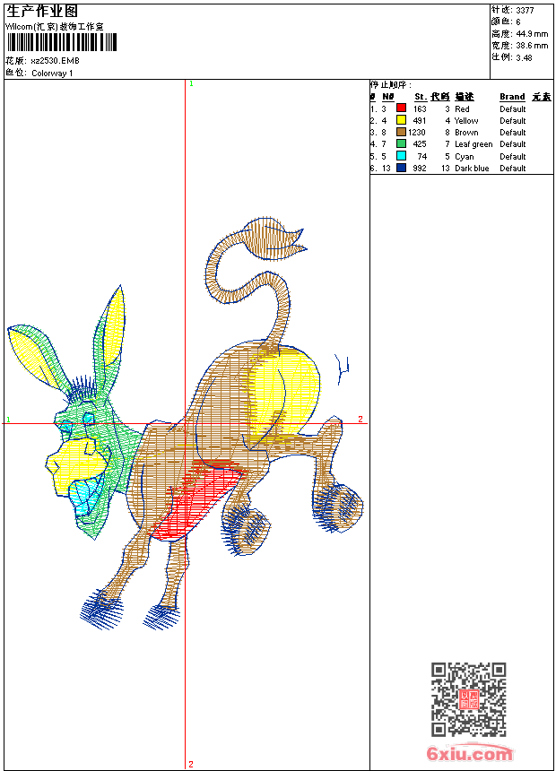 - emb花版参数: 大小:40.00 KB / 尺寸:39*45[毫米] / 针数:3377针 / 线色:6 / 格式:emb / 版本:9
