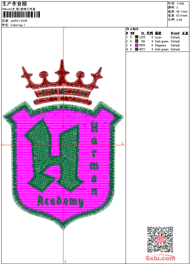- emb花版参数: 大小:49.50 KB / 尺寸:64*90[毫米] / 针数:11306针 / 线色:3 / 格式:emb / 版本:9
