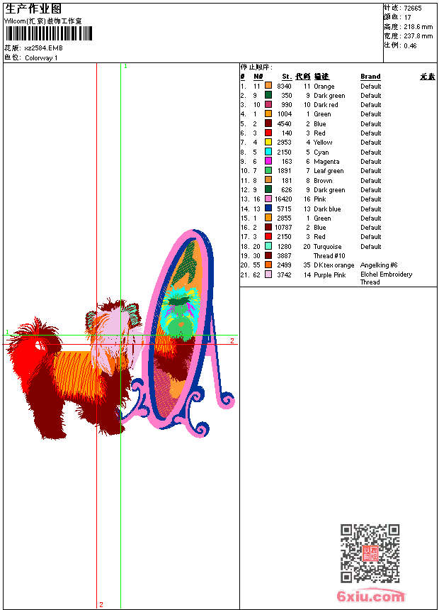 - 版带文件需绣花软件方可打开,可配色打印导出各种格式或直接上机绣。如无绣花软件可下载1:1模拟效果图。