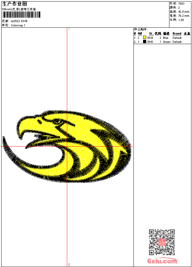 - 版带文件需绣花软件方可打开,可配色打印导出各种格式或直接上机绣。如无绣花软件可下载1:1模拟效果图。
