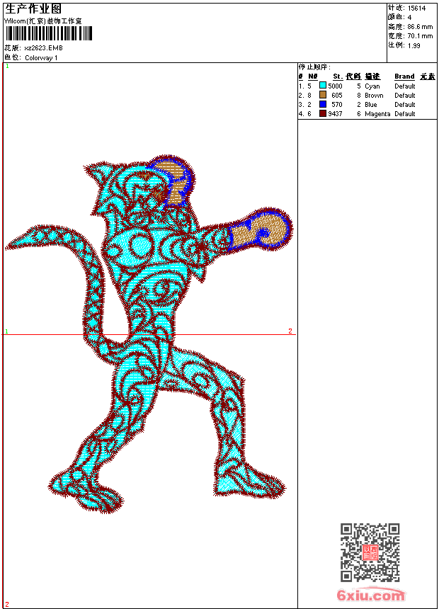 - 版带文件需绣花软件方可打开,可配色打印导出各种格式或直接上机绣。如无绣花软件可下载1:1模拟效果图。