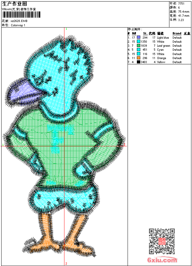 - 版带文件需绣花软件方可打开,可配色打印导出各种格式或直接上机绣。如无绣花软件可下载1:1模拟效果图。