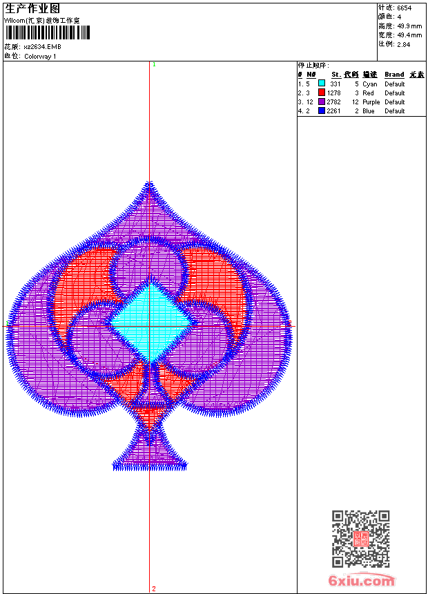 - emb花版参数: 大小:49.00 KB / 尺寸:49*50[毫米] / 针数:6654针 / 线色:4 / 格式:emb / 版本:9