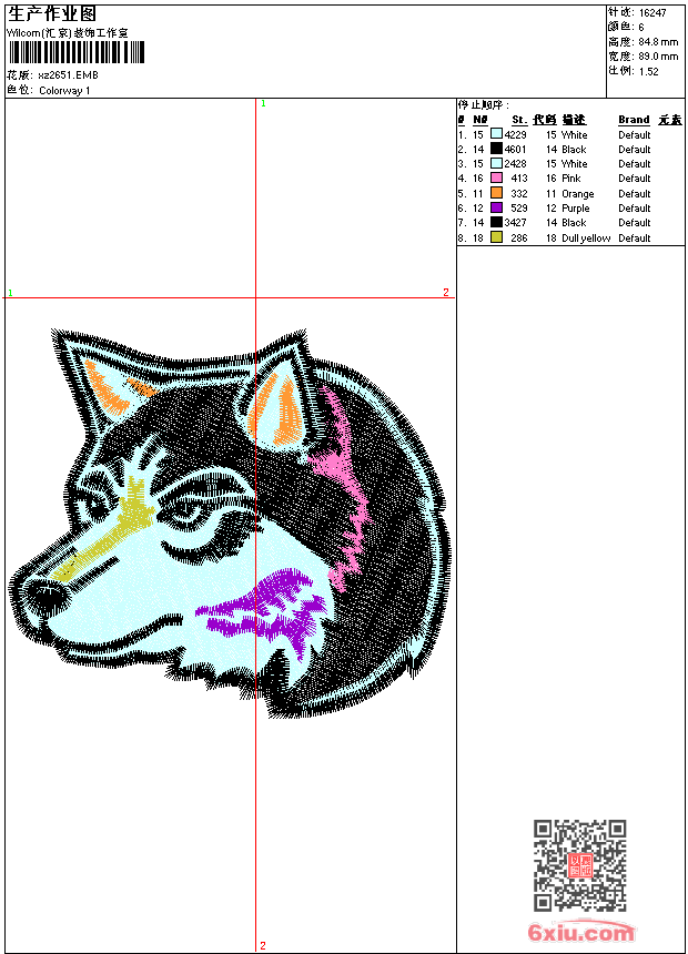 - emb花版参数: 大小:74.00 KB / 尺寸:89*85[毫米] / 针数:16247针 / 线色:6 / 格式:emb / 版本:9