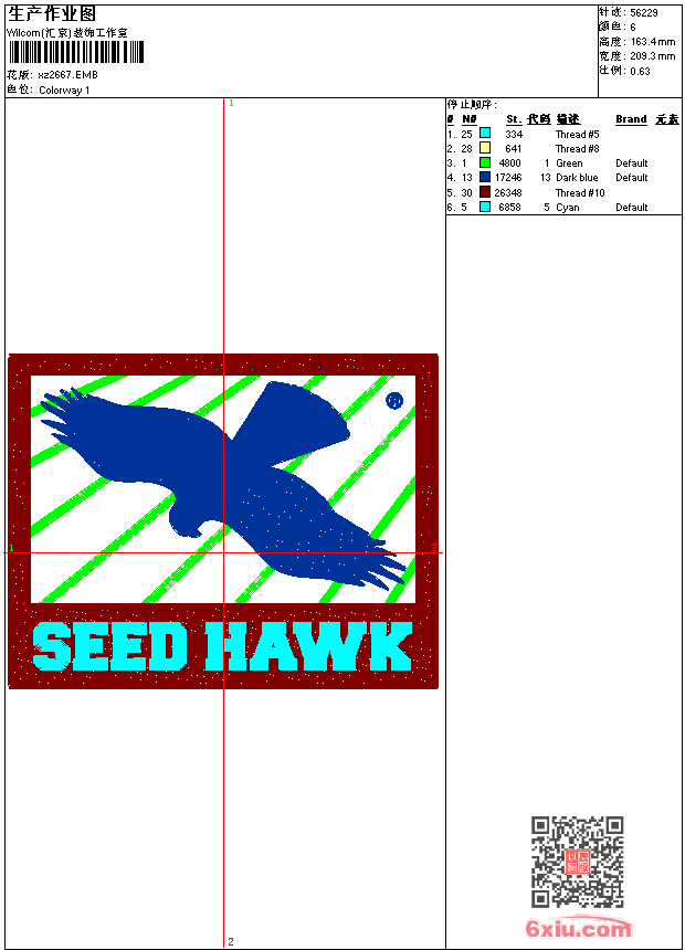 - emb花版参数: 大小:117.00 KB / 尺寸:209*163[毫米] / 针数:56229针 / 线色:6 / 格式:emb / 版本:9