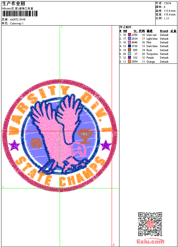 - 版带文件需绣花软件方可打开,可配色打印导出各种格式或直接上机绣。如无绣花软件可下载1:1模拟效果图。