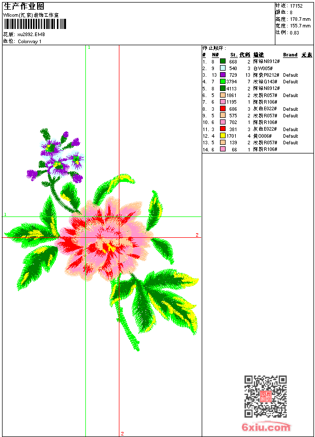 靓花 点此上传花版兑乐绣币/现金 emb花版参数: 大小:151.50 KB / 尺寸:156*179[毫米] / 针数:17152针 / 线色:8 / 格式:emb / 版本:9 版带文件需绣花软件方可打开,可配色打印导出各种格式或直接上机绣。如无绣花软件可下载1:1模拟效果图。 PNG图片信息:大小:0.3(MB) /图宽*高:590x677(像素) emb下载 1:1图下载 关闭 相似花版: 树花 抽象 链目绣 花朵 花朵 花朵 花朵 花朵 雕孔 花 雕孔 花 珠片 曲线 满幅 雕孔 靓花 花条 靓花 花条 简单花 简单花 连衣裙 五角星珠片 水溶条码 上一个花样:靓花 下一个花样:树花