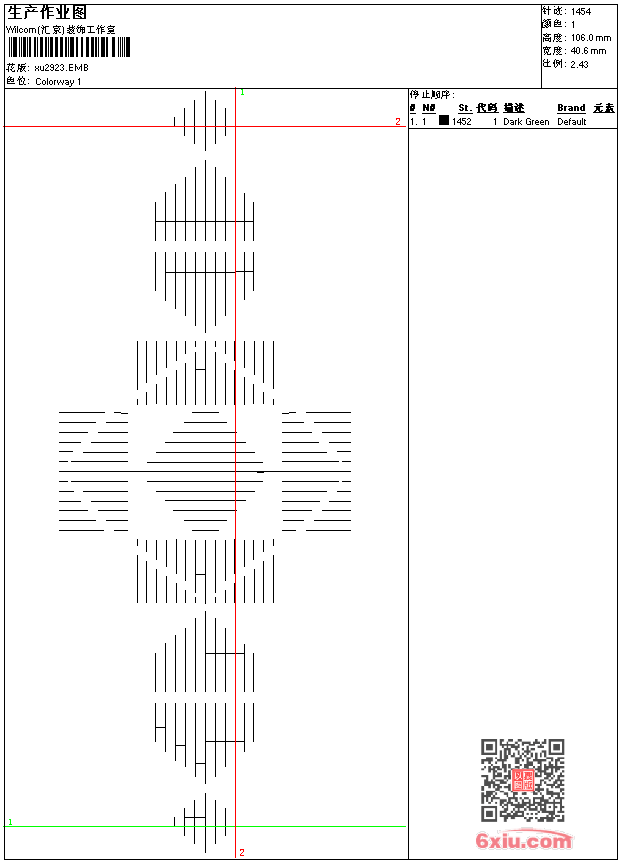 抽象 点此上传花版兑乐绣币/现金 emb花版参数: 大小:26.00 KB / 尺寸:41*106[毫米] / 针数:1454针 / 线色:1 / 格式:emb / 版本:9 版带文件需绣花软件方可打开,可配色打印导出各种格式或直接上机绣。如无绣花软件可下载1:1模拟效果图。 PNG图片信息:大小:0.1(MB) /图宽*高:154x402(像素) emb下载 1:1图下载 关闭 相似花版: 条码 线条花 简单花 网布 曲线 曲线 网布 靓花 简单花 虎 上山老虎 靓花 简单花 条码 简单花 简单花 简单花 裤 简单花 简单花 简单花 曲线 蝴蝶 珠片 水滴 雕孔 裙 满幅 珠片 上一个花样:藤条 下一个花样:条码