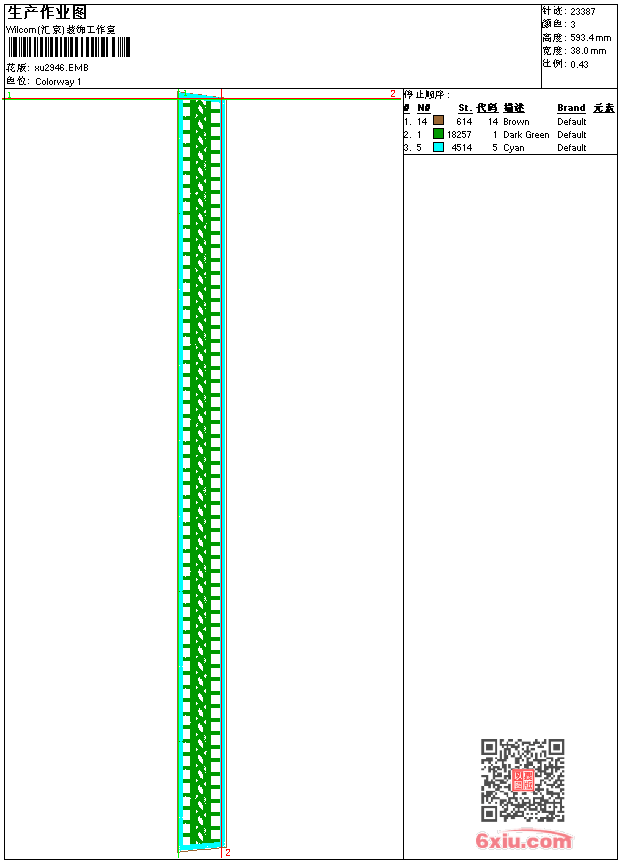 条码 点此上传花版兑乐绣币/现金 emb花版参数: 大小:38.00 KB / 尺寸:38*593[毫米] / 针数:23387针 / 线色:3 / 格式:emb / 版本:9 版带文件需绣花软件方可打开,可配色打印导出各种格式或直接上机绣。如无绣花软件可下载1:1模拟效果图。 PNG图片信息:大小:0.5(MB) /图宽*高:144x2245(像素) emb下载 1:1图下载 关闭 相似花版: 花条 曲线 简单花 简单花 曲线 珠片 简单花 花条 裙 花条 花条 简单花 五角星 珠片 花朵 珠片 曲线 曲线 袖 抽象 领 条码 条码 几何 满幅 碎花 满幅 藤条 藤条 上一个花样:雕孔 幅杂 条码 下一个花样:花条