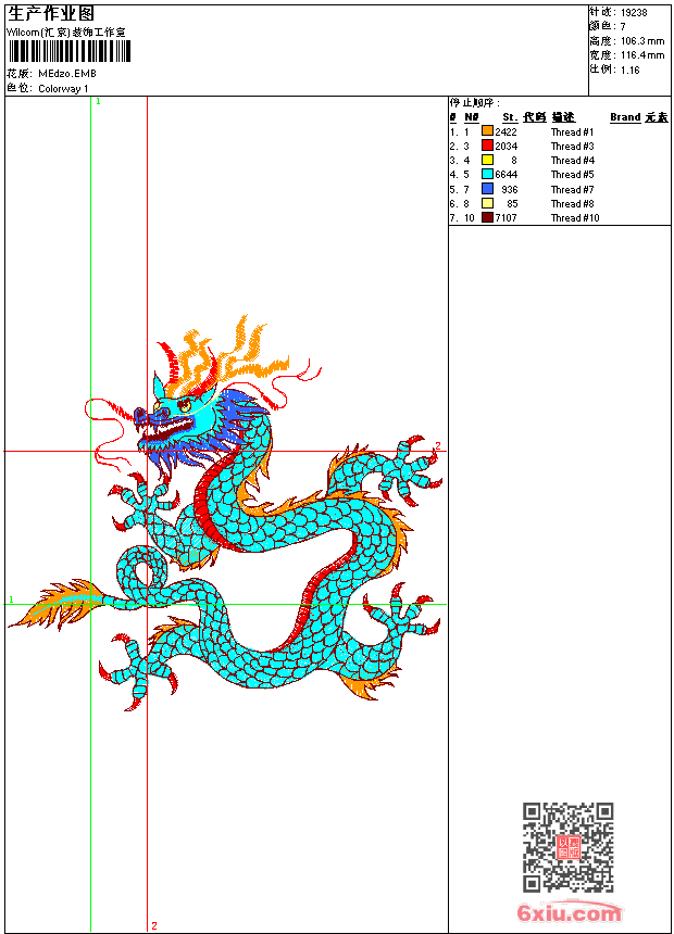 龙 点此上传花版兑乐绣币/现金 emb花版参数: 大小:78.00 KB / 尺寸:116*106[毫米] / 针数:19238针 / 线色:7 / 格式:emb / 版本:9 版带文件需绣花软件方可打开,可配色打印导出各种格式或直接上机绣。如无绣花软件可下载1:1模拟效果图。 PNG图片信息:大小:0.2(MB) /图宽*高:441x403(像素) emb下载 1:1图下载 关闭 相似花版: 牛头徽章标志 12生肖牛 翅膀骷髅 靓花 靓花 龙 靓花 精品古代美女 龙 老虎头 靓花 凤凰 龙 鲤鱼 美少女头像 抱枕 仙鹤 抱枕 徽章标志 玫瑰花 上一个花样:骷髅 下一个花样:牛头徽章标志