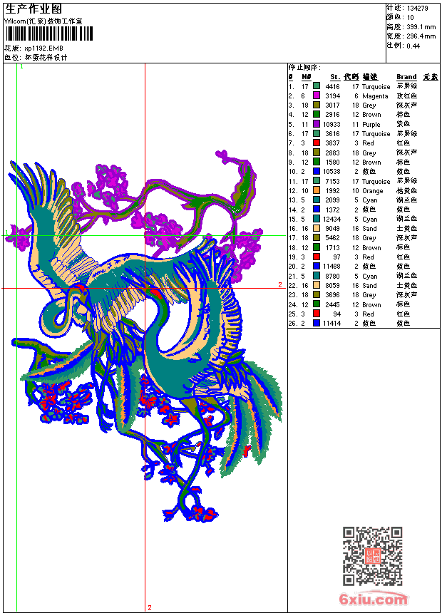 仙鹤 点此上传花版兑乐绣币/现金 emb花版参数: 大小:810.00 KB / 尺寸:296*399[毫米] / 针数:134279针 / 线色:10 / 格式:emb / 版本:9 版带文件需绣花软件方可打开,可配色打印导出各种格式或直接上机绣。如无绣花软件可下载1:1模拟效果图。 PNG图片信息:大小:2.0(MB) /图宽*高:1121x1510(像素) emb下载 1:1图下载 关闭 相似花版: 珠片真维斯 蜜蜂 皇冠 老虎头 徽章标志飞机 徽章标志 徽章标志 徽章标志 卡通牛 卡通牛 卡通牛 卡通牛 徽章标志 徽章标志 徽章标志 蝴蝶 鲤鱼 鲤鱼 鲤鱼 鲤鱼 徽章标志 上一个花样:鸟 下一个花样:珠片真维斯