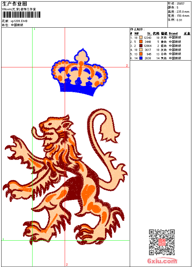 狮子皇冠 点此上传花版兑乐绣币/现金 emb花版参数: 大小:190.00 KB / 尺寸:150*236[毫米] / 针数:35857针 / 线色:5 / 格式:emb / 版本:9 版带文件需绣花软件方可打开,可配色打印导出各种格式或直接上机绣。如无绣花软件可下载1:1模拟效果图。 PNG图片信息:大小:0.5(MB) /图宽*高:569x892(像素) emb下载 1:1图下载 关闭 相似花版: 鹰爪 人头像 骏马 豹靓花 徽章标志 徽章标志 荷花鲤鱼 梅花 锦鸡 鸟 梅花 龙 下山老虎 狗 皇冠 章标 豹头 小狗 鸟 鸟 仙鹤 珠片真维斯 蜜蜂 皇冠 老虎头 上一个花样:鹰 小刀 下一个花样:鹰爪