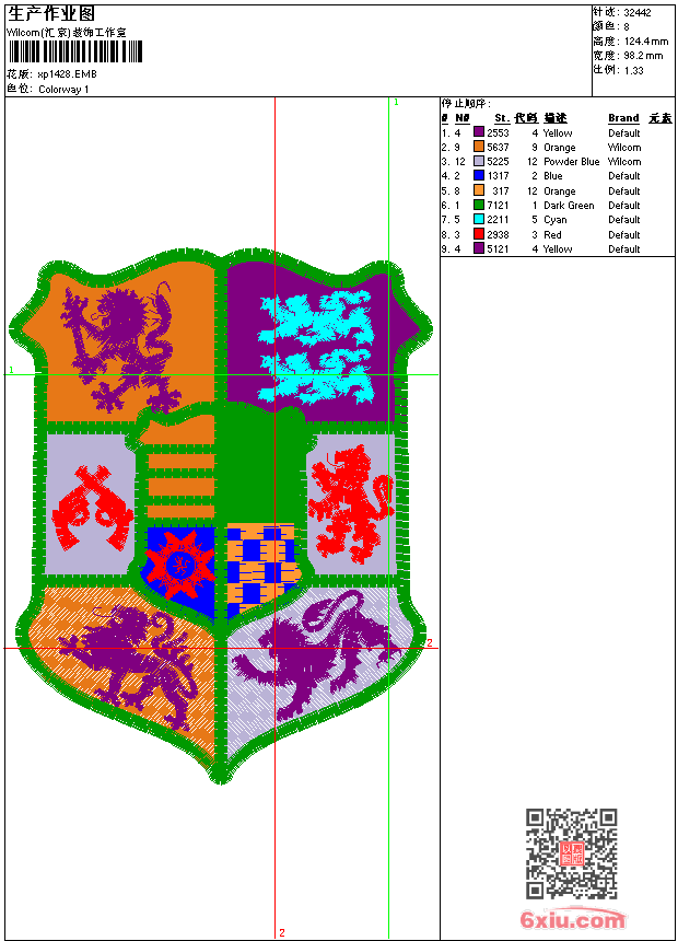 徽章标志 点此上传花版兑乐绣币/现金 emb花版参数: 大小:118.50 KB / 尺寸:98*124[毫米] / 针数:32442针 / 线色:8 / 格式:emb / 版本:9 版带文件需绣花软件方可打开,可配色打印导出各种格式或直接上机绣。如无绣花软件可下载1:1模拟效果图。 PNG图片信息:大小:0.3(MB) /图宽*高:372x471(像素) emb下载 1:1图下载 关闭 相似花版: 领花 王冠 徽章标志 徽章标志 鸟 花朵 独角兽 花朵 徽章标志 蜜蜂 字母 徽章标志 蜜蜂 人物 卡通 人物 拿破仑骑马 人物 拿破仑骑马 徽章标志 蜜蜂 徽章标志 蜜蜂 徽章标志 蜜蜂 靓花 竹子 船 风景 徽章标志 徽章标志 上一个花样:卡通 螃蟹 下一个花样:领花