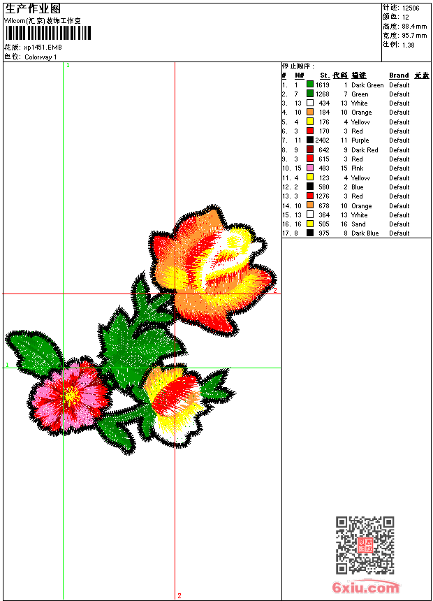 靓花 点此上传花版兑乐绣币/现金 emb花版参数: 大小:109.00 KB / 尺寸:96*88[毫米] / 针数:12506针 / 线色:12 / 格式:emb / 版本:9 版带文件需绣花软件方可打开,可配色打印导出各种格式或直接上机绣。如无绣花软件可下载1:1模拟效果图。 PNG图片信息:大小:0.1(MB) /图宽*高:362x335(像素) emb下载 1:1图下载 关闭 相似花版: 靓花 靓花 靓花 锚 章标 心形 王冠 徽章标志 小鸟 锚 章标 心形 豹子头 豹子 骷髅 骷髅 外星人 徽章标志 豹 心形 狗 心形 小鸟 上一个花样:小鸟 下一个花样:靓花
