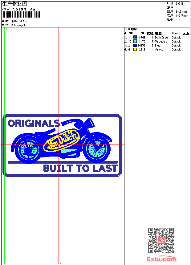 徽章标志 摩托车 点此上传花版兑乐绣币/现金 emb花版参数: 大小:87.50 KB / 尺寸:187*98[毫米] / 针数:29789针 / 线色:4 / 格式:emb / 版本:9 版带文件需绣花软件方可打开,可配色打印导出各种格式或直接上机绣。如无绣花软件可下载1:1模拟效果图。 PNG图片信息:大小:0.3(MB) /图宽*高:710x372(像素) emb下载 1:1图下载 关闭 相似花版: 美女 鸟 兔子 徽章标志 徽章标志 徽章标志 猫头鹰 徽章标志 小鸟 徽章标志 毛巾绣 徽章标志 小鸟 徽章标志 松鼠 徽章标志 徽章标志 毛巾绣鳄鱼 毛巾绣狗 徽章标志 徽章标志 狼头 上一个花样:绵羊 下一个花样:美女 鸟
