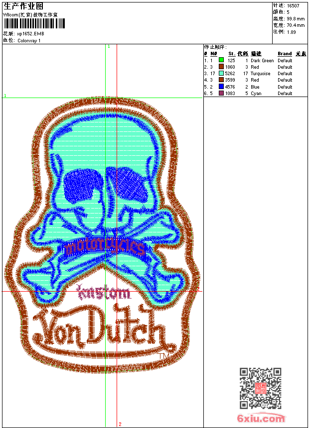 骷髅 点此上传花版兑乐绣币/现金 emb花版参数: 大小:91.50 KB / 尺寸:70*100[毫米] / 针数:16507针 / 线色:5 / 格式:emb / 版本:9 版带文件需绣花软件方可打开,可配色打印导出各种格式或直接上机绣。如无绣花软件可下载1:1模拟效果图。 PNG图片信息:大小:0.2(MB) /图宽*高:267x378(像素) emb下载 1:1图下载 关闭 相似花版: 徽章标志 徽章标志 卡通 老鹰 鹰 猴头 猫头 狼头 龙虾 卡通人头像 卡通人头像 卡通人头像 徽章标志 徽章标志 卡通人头像 卡通人头像 卡通人头像 卡通人头像 卡通人头像 徽章标志 上一个花样:卡通 奥特曼 下一个花样:徽章标志