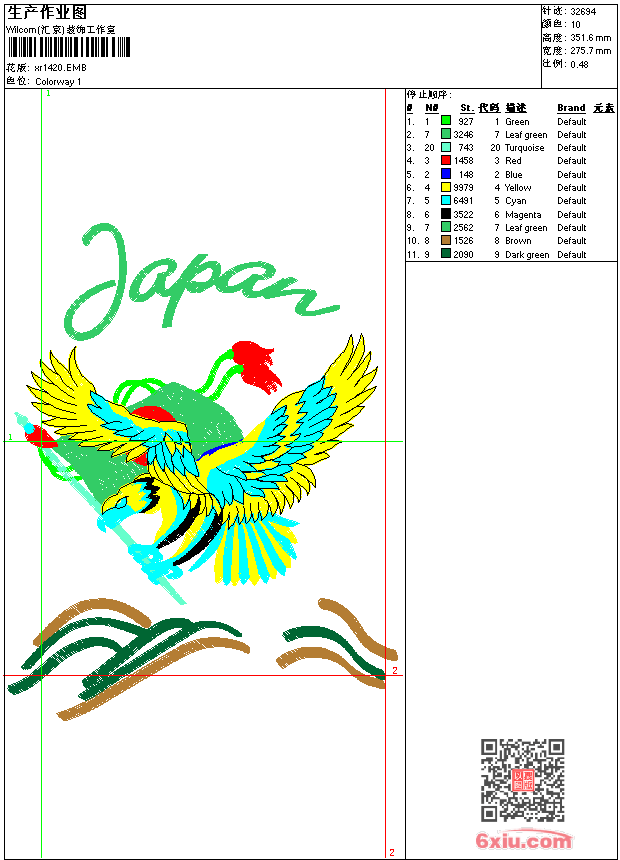 鸟 点此上传花版兑乐绣币/现金 emb花版参数: 大小:163.00 KB / 尺寸:276*352[毫米] / 针数:32694针 / 线色:10 / 格式:emb / 版本:9 版带文件需绣花软件方可打开,可配色打印导出各种格式或直接上机绣。如无绣花软件可下载1:1模拟效果图。 PNG图片信息:大小:1.1(MB) /图宽*高:1043x1330(像素) emb下载 1:1图下载 关闭 相似花版: 狮子 靓花 龙 龙 靓花 靓花 鸟 龙 凤凰 靓花 靓花 鸟 靓花 靓花 靓花 竹子 竹子 龙 靓花 靓花 靓花 上一个花样:荷花 下一个花样:狮子