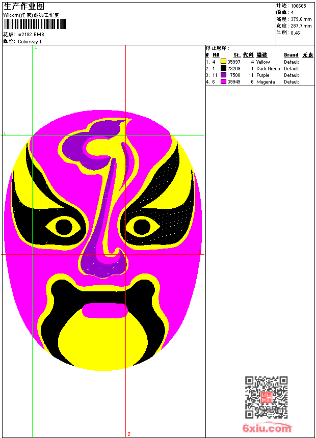 脸谱 点此上传花版兑乐绣币/现金 emb花版参数: 大小:179.00 KB / 尺寸:288*380[毫米] / 针数:106665针 / 线色:4 / 格式:emb / 版本:9 版带文件需绣花软件方可打开,可配色打印导出各种格式或直接上机绣。如无绣花软件可下载1:1模拟效果图。 PNG图片信息:大小:2.2(MB) /图宽*高:1089x1436(像素) emb下载 1:1图下载 关闭 相似花版: 脸谱 龙 狮标 龙 猫 鸟 靓花 鸟 孔雀 凤凰 龙 孔雀 荷花 凤凰 凤凰 靓花 鞋垫 老虎 靓花 靓花 靓花 梅花 上一个花样:脸谱 下一个花样:脸谱