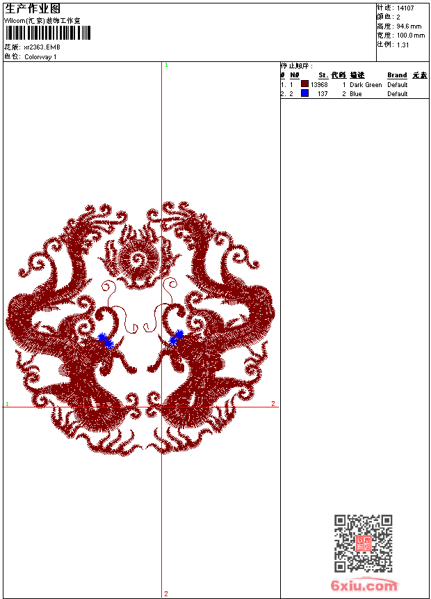 龙 点此上传花版兑乐绣币/现金 emb花版参数: 大小:88.50 KB / 尺寸:100*95[毫米] / 针数:14108针 / 线色:2 / 格式:emb / 版本:9 版带文件需绣花软件方可打开,可配色打印导出各种格式或直接上机绣。如无绣花软件可下载1:1模拟效果图。 PNG图片信息:大小:0.2(MB) /图宽*高:379x358(像素) emb下载 1:1图下载 关闭 相似花版: 龙 靓花 鸟 龙 豹章标 梅花 龙 龙 靓花 龙凤凰 公鸡 龙 鸟 猩猩 猴子 鸳鸯 龙 靓花 孔雀 鸟 龙 上一个花样:龙 下一个花样:龙