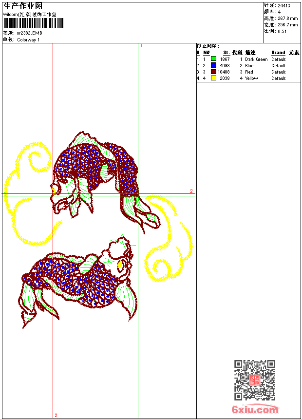 鲤鱼 点此上传花版兑乐绣币/现金 emb花版参数: 大小:142.50 KB / 尺寸:257*268[毫米] / 针数:24413针 / 线色:4 / 格式:emb / 版本:9 版带文件需绣花软件方可打开,可配色打印导出各种格式或直接上机绣。如无绣花软件可下载1:1模拟效果图。 PNG图片信息:大小:0.7(MB) /图宽*高:971x1013(像素) emb下载 1:1图下载 关闭 相似花版: 龙 鸟 靓花 纸牌 国王 观音 鲤鱼 靓花 北极熊 鸟 鲤鱼 猫 猴子 孙悟空 靓花 老虎 孔雀 孔雀 龙 金鱼 猫 龙 龙 龙 上一个花样:靓花 下一个花样:龙