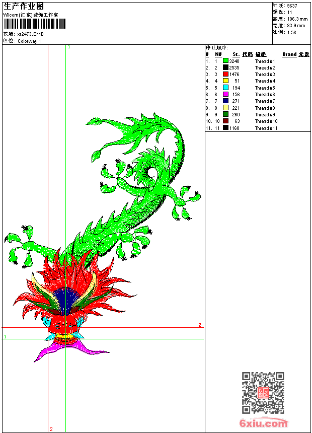 龙 点此上传花版兑乐绣币/现金 emb花版参数: 大小:63.50 KB / 尺寸:84*106[毫米] / 针数:9637针 / 线色:11 / 格式:emb / 版本:9 版带文件需绣花软件方可打开,可配色打印导出各种格式或直接上机绣。如无绣花软件可下载1:1模拟效果图。 PNG图片信息:大小:0.1(MB) /图宽*高:318x403(像素) emb下载 1:1图下载 关闭 相似花版: 鹤 鹰 鲤鱼 龙 荷花 鸟 柳树 龙 靓花 金鱼 龙 荷花 鸳鸯 鲤鱼 龙 孔雀 靓花 龙 龙 鸭 鸳鸯 美女 剪纸 美女 上一个花样:靓花 下一个花样:鹤