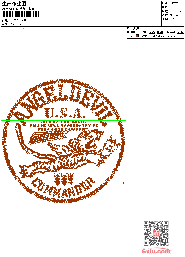 老虎标 点此上传花版兑乐绣币/现金 emb花版参数: 大小:104.50 KB / 尺寸:100*101[毫米] / 针数:13757针 / 线色:1 / 格式:emb / 版本:9 版带文件需绣花软件方可打开,可配色打印导出各种格式或直接上机绣。如无绣花软件可下载1:1模拟效果图。 PNG图片信息:大小:0.2(MB) /图宽*高:378x383(像素) emb下载 1:1图下载 关闭 相似花版: 章标人物 虎头 鹰标 虎头 骷髅 龙 老虎 龙争虎斗 老虎 十二生肖 靓花 靓花 鸟 鲤鱼 鲤鱼 靓花 靓花 靓花 靓花 靓花 靓花 上一个花样:骷髅 下一个花样:章标人物