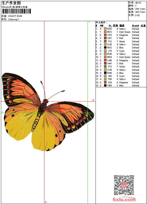 蝴蝶 点此上传花版兑乐绣币/现金 emb花版参数: 大小:229.00 KB / 尺寸:306*259[毫米] / 针数:46312针 / 线色:7 / 格式:emb / 版本:9 版带文件需绣花软件方可打开,可配色打印导出各种格式或直接上机绣。如无绣花软件可下载1:1模拟效果图。 PNG图片信息:大小:1.5(MB) /图宽*高:1157x981(像素) emb下载 1:1图下载 关闭 相似花版: 靓花牡丹花 靓花牡丹花 虎头 珠片 梅花 龙 宇宙 卡通 章 侬好 中国传统画 慈母教子 鸟 竹子 汉服 靓花 靓花牡丹花 珠片 靓花 装饰 抱枕 蛇 蝴蝶 狗 虎头 松树 寿 鸟 竹子 汉服 蝴蝶 蝴蝶 上一个花样:靓花牡丹花 下一个花样:靓花牡丹花