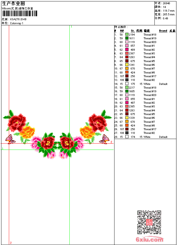 靓花牡丹花 点此上传花版兑乐绣币/现金 emb花版参数: 大小:219.00 KB / 尺寸:266*120[毫米] / 针数:26940针 / 线色:14 / 格式:emb / 版本:9 版带文件需绣花软件方可打开,可配色打印导出各种格式或直接上机绣。如无绣花软件可下载1:1模拟效果图。 PNG图片信息:大小:0.4(MB) /图宽*高:1005x453(像素) emb下载 1:1图下载 关闭 相似花版: 蝴蝶 靓花牡丹花 靓花牡丹花 虎头 珠片 梅花 龙 宇宙 卡通 章 侬好 中国传统画 慈母教子 鸟 竹子 汉服 靓花 靓花牡丹花 珠片 靓花 装饰 抱枕 蛇 蝴蝶 狗 虎头 松树 寿 鸟 竹子 汉服 蝴蝶 上一个花样:大象 下一个花样:蝴蝶