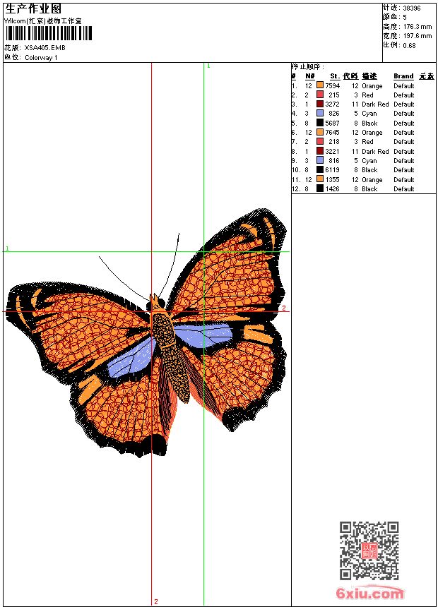 蝴蝶 上传花版得乐绣币/现金 emb花版参数: 大小:141.00 KB / 尺寸:198*176[毫米] / 针数:38396针 / 线色:5 / 格式:emb / 版本:9 版带文件需绣花软件方可打开,可配色打印导出各种格式或直接上机绣。如无绣花软件可下载1:1模拟效果图。 PNG图片信息:大小:0.7(MB) /图宽*高:748x667(像素) emb下载 1:1图下载 收藏本图 关闭 相似花版: 龙 猫狗 靓花 凤凰 虎 靓花 鸟 竹子 汉服 靓花 靓花 龙 靓花 蝴蝶 猫头 靓花 龙 靓花 猫 蝴蝶 靓花 迪士尼 公主 上一个花样:蝴蝶 下一个花样:龙