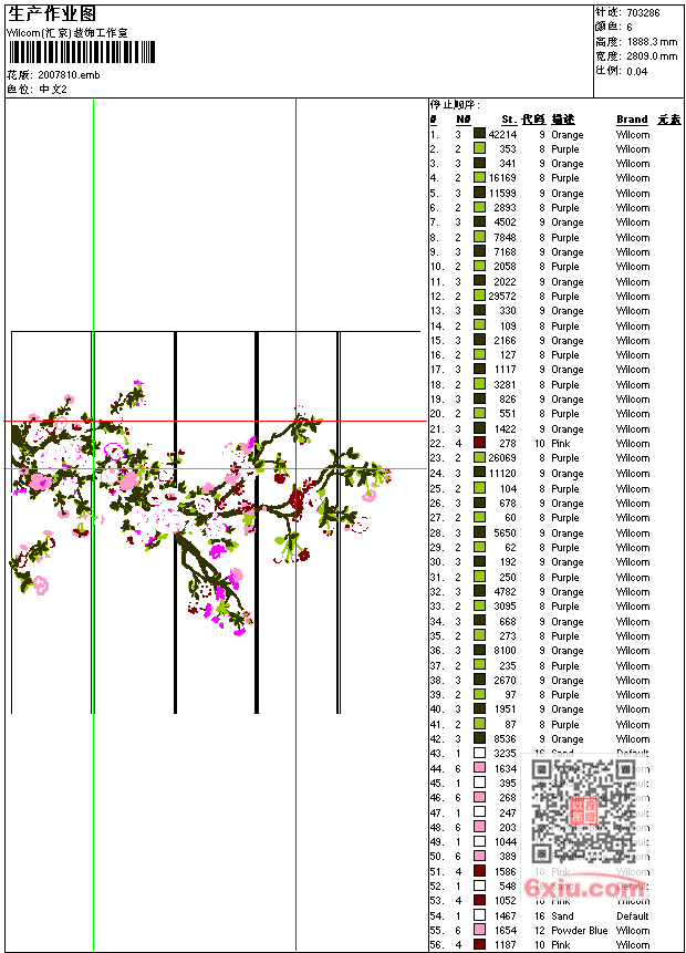 - emb花版参数: 大小:3.00 MB / 尺寸:2809*1888[毫米] / 针数:703286针 / 线色:6 / 格式:emb / 版本:2006