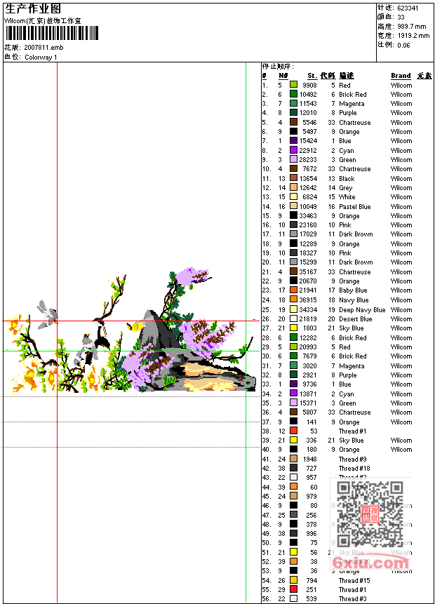 - emb花版参数: 大小:2.42 MB / 尺寸:1919*990[毫米] / 针数:623341针 / 线色:33 / 格式:emb / 版本:e2