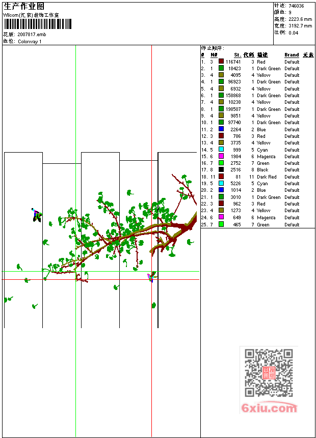 - emb花版参数: 大小:2.14 MB / 尺寸:3193*2224[毫米] / 针数:746036针 / 线色:9 / 格式:emb / 版本:e2