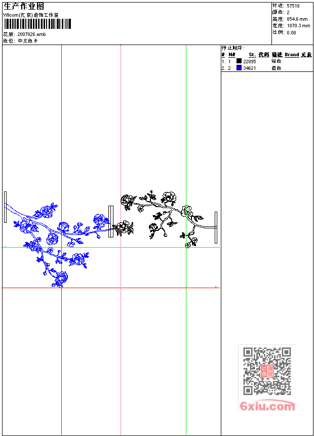 - emb花版参数: 大小:233.00 KB / 尺寸:1870*855[毫米] / 针数:57518针 / 线色:2 / 格式:emb / 版本:e2