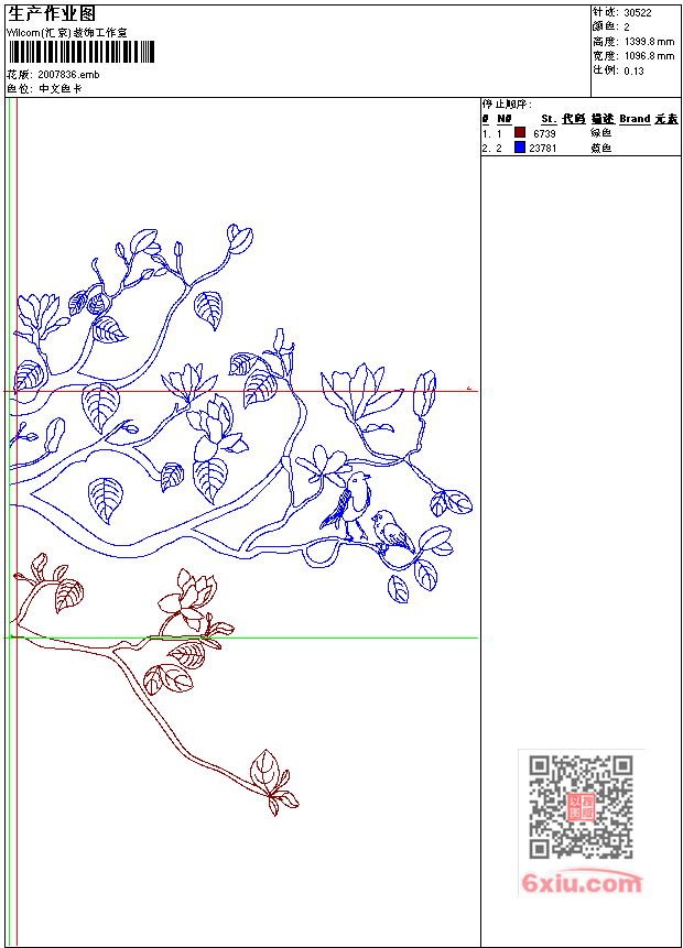 - emb花版参数: 大小:135.00 KB / 尺寸:1097*1400[毫米] / 针数:30522针 / 线色:2 / 格式:emb / 版本:e2