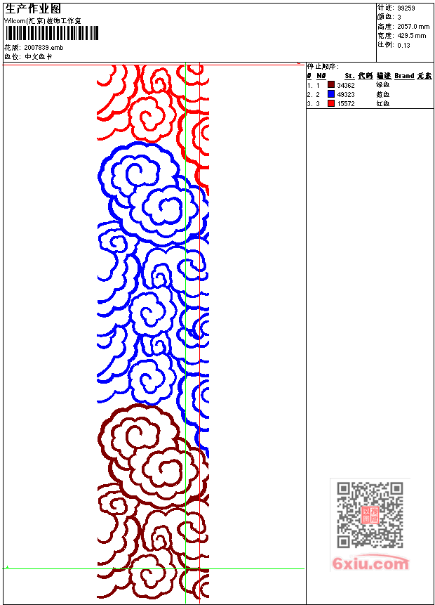 - emb花版参数: 大小:326.00 KB / 尺寸:429*2057[毫米] / 针数:99259针 / 线色:3 / 格式:emb / 版本:e2